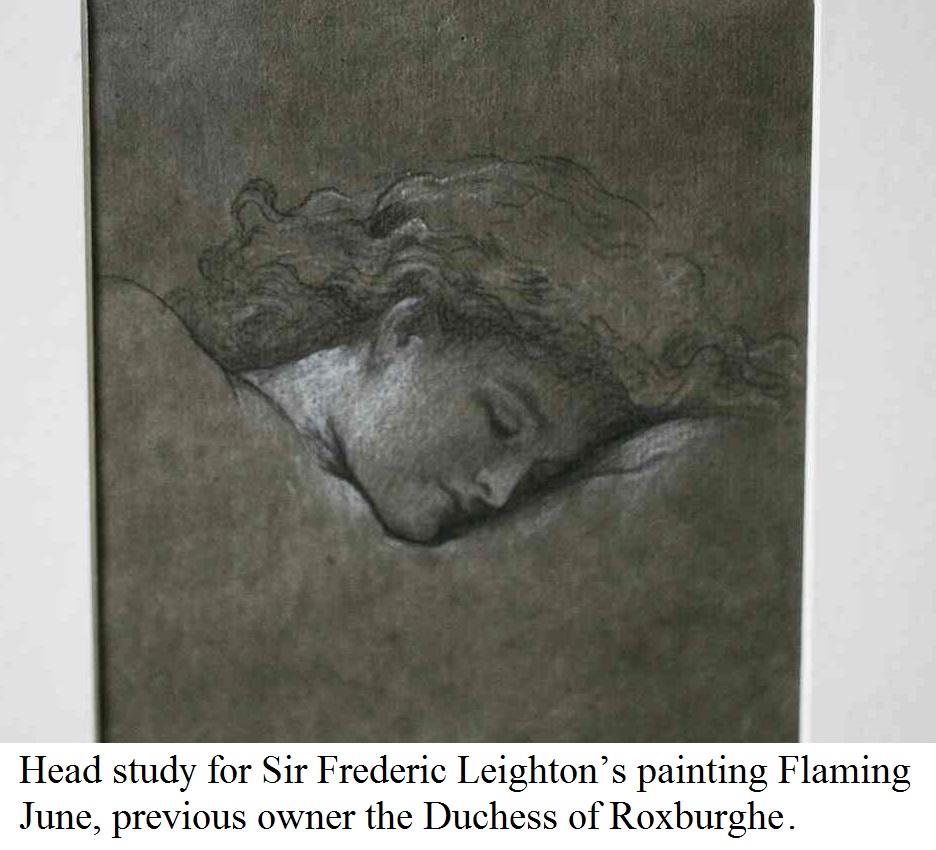 Pencil and chalk drawing of a woman’s head: the central study for Flaming June – lost for more than a century.